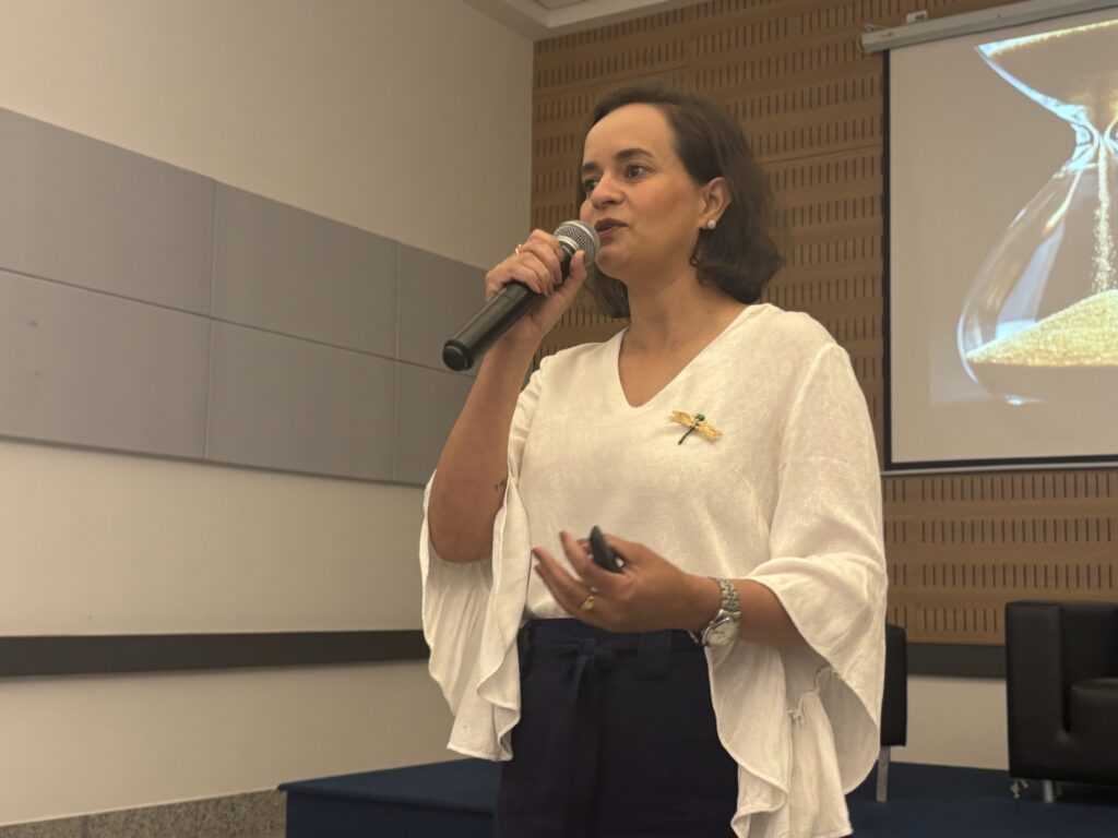 O evento prosseguiu com uma mesa-redonda reunindo Diego Fraga, Alexandre Andrade, João Rafael Soares, Gabriela Vieira e João Carlos Mendonça, monitor de qualidade da Algar Farming, sob mediação do professor da Fazu, Luan Odorizzi.