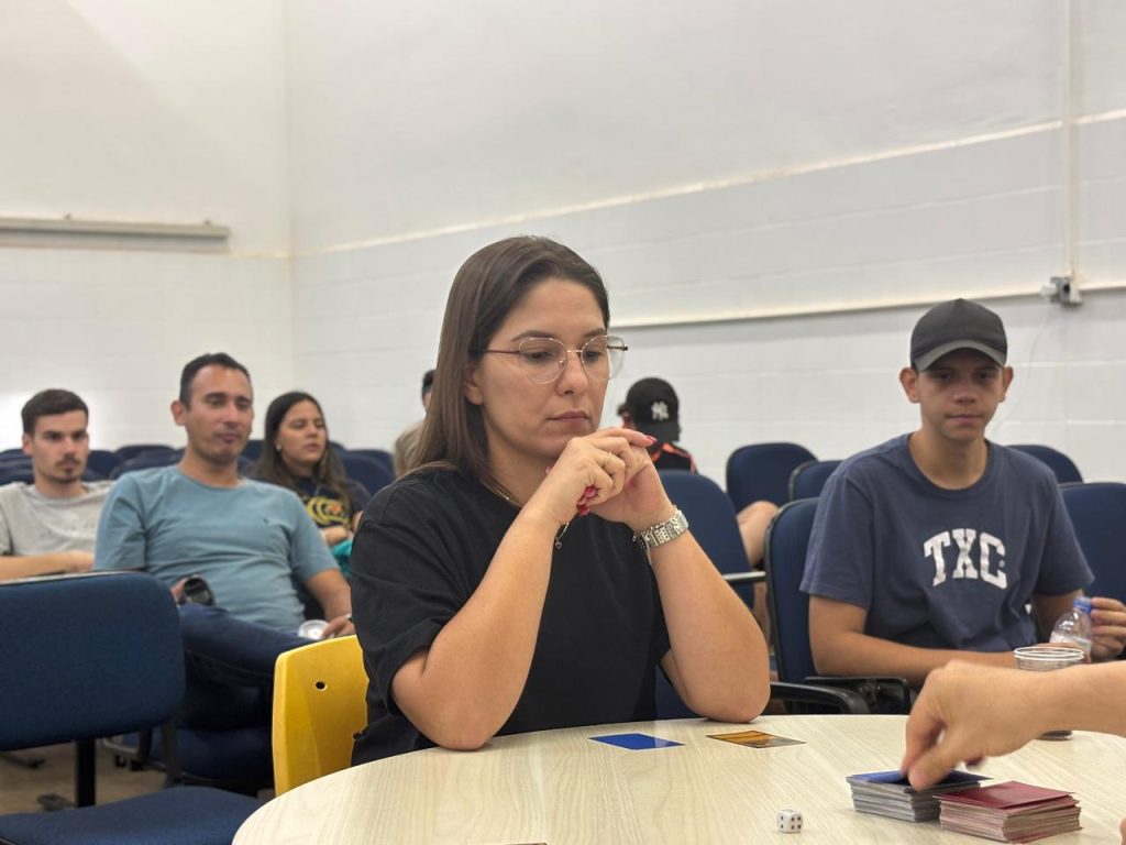 Os jogadores convidados foram os professores Diego Fraga, Kamila Mielke e Vinicius Filla. O evento também contou com a participação dos alunos que integram o projeto, que colaboraram com a condução e fizeram plateia. “Tivemos professores das áreas de daninhas, produção vegetal, entomologia e eu, que sou da área de máquinas, que são aspectos que temos no jogo. O intuito foi jogar para ver o quão válido ele está para poder ensinar esses conceitos de Agronomia”, explicou o professor Felipe.