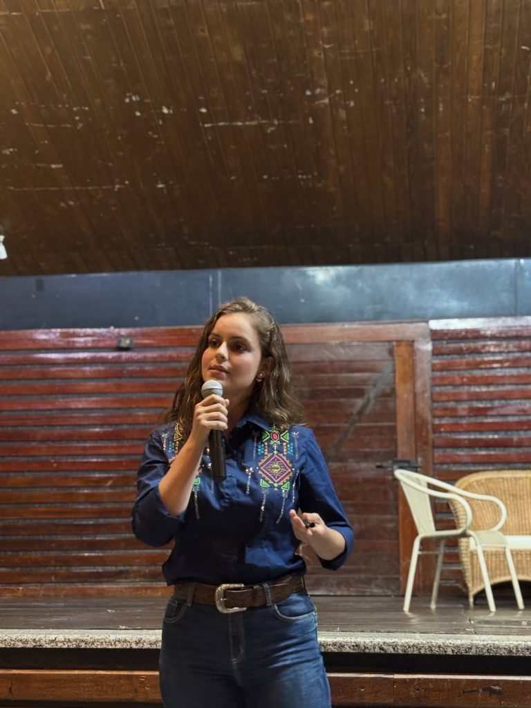 Em seguida, a aluna Luiza Helena Silva Costa, da Agronomia, apresentou o projeto “Produtividade de Soja e Milho Sob Semeadura Direta em Biomassa de Urochloa ruziziensis e Urochloa brizantha × U. ruziziensis cv. Mixe Drwn 12 (Mavuno)”, sob orientação do Prof. Dr. Rayner Sversut Barbieri.