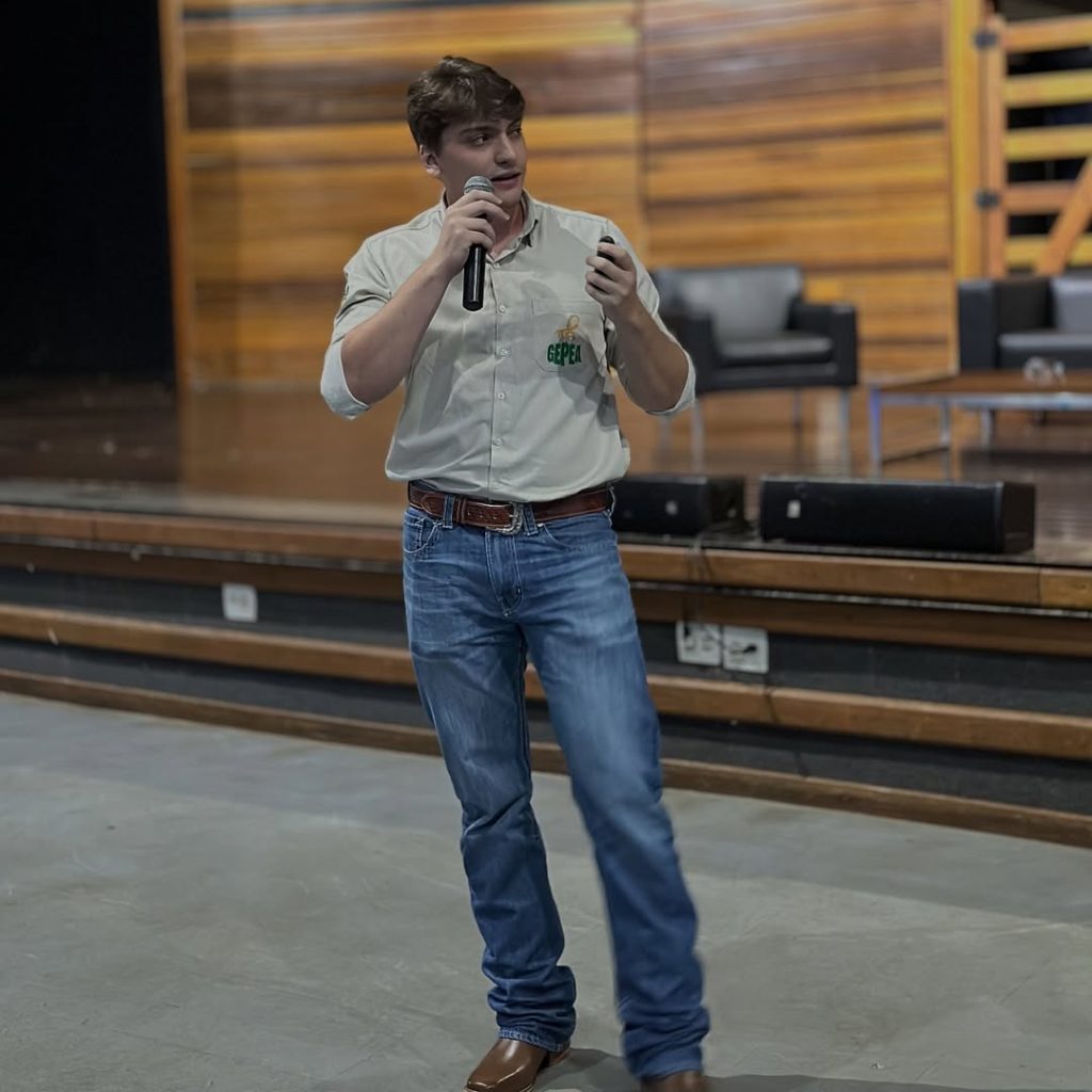 Por fim, o aluno Lucas Marega de Sousa, da Agronomia, apresentou o estudo “Efeito do Bacillus aryabhattai na Resistência de Plantas de Milho a Spodoptera frugiperda em Estresse Hídrico”, desenvolvido sob orientação do Prof. Dr. Diego Felisbino Fraga.