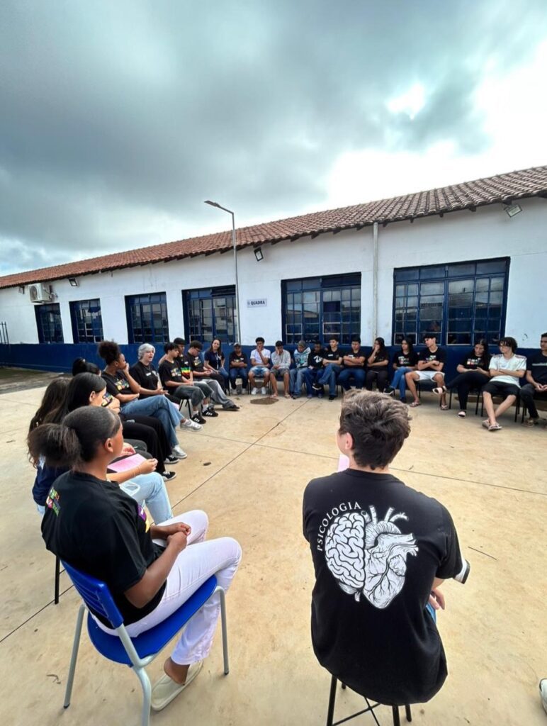 A atividade, intitulada “Conectando com meu Futuro”, foi conduzida pelos graduandos sob supervisão da professora e coordenadora do curso, Sheilla Parreira. Em formato de roda de conversa, o encontro teve início com apresentações e, na sequência, os estudantes da escola participaram de um momento de compartilhamento sobre seus talentos, habilidades e aspirações profissionais. A ação foi encerrada com uma reflexão.