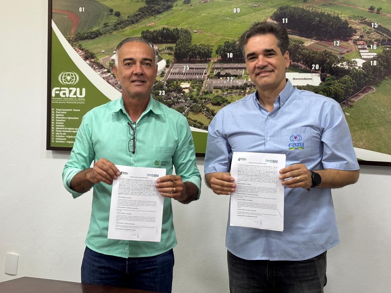 O acordo foi assinado pelo presidente do SRU, Vinícius Rodrigues, e pelo diretor da Fazu, José Olavo Borges Mendes Júnior. Representando a Fazu, também estiveram presentes o doutor em Produção Vegetal Vinícius Filla, professor que conduzirá a unidade de demonstração; a coordenadora de Pesquisa, Juliana Paschoal; e o assessor jurídico, Marcos Jammal. Já pelo SRU, participou ainda o representante jurídico João Henrique de Paula.
